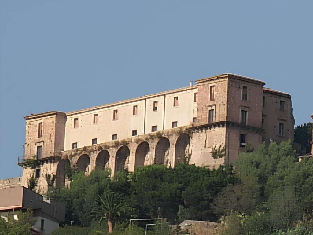 The structure, which is still incomplete today, was built a few metres from the remains of the previous Norman manor, of which only a few stone foundations and a cistern remain, partly incorporated into a nearby noble palace. The structure appears as a massive building dominating the Marina di Nicotera below, with the main façade showing marked similarities to the Certosa di San Martino in Naples.